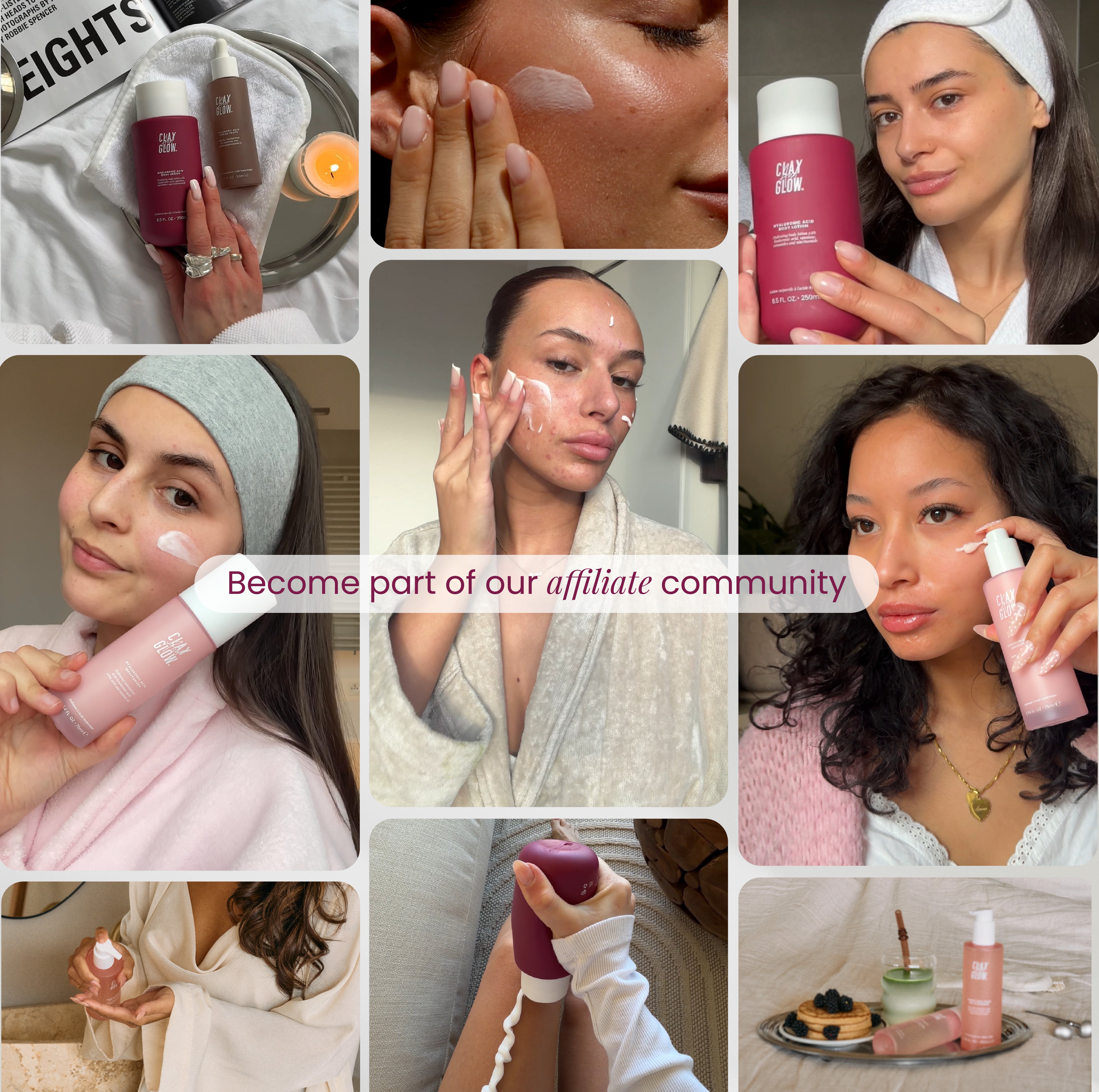 As a Clay And Glow affiliate creator, you’ll receive free products, join our exclusive monthly challenges, and earn commission while growing with us.